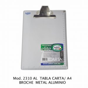 Las tablas con broche de metal, están disponibles en plástico, aluminio y MDF y se encuentran en tamaño carta u oficio.