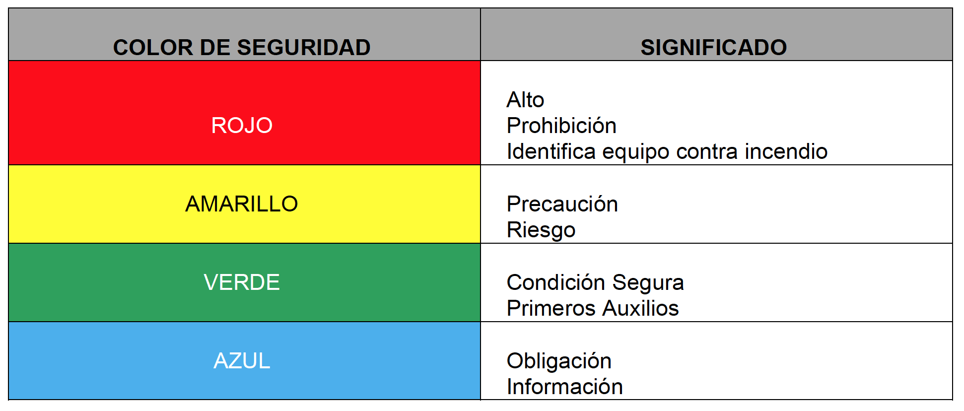 De acuerdo al color, las señales se clasifican de la siguiente manera: