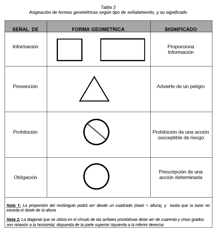 Es importante mencionar que también existe una tabla para calcular la distancia que hay que guardar entre una señal y otra. Esto es porque hay señales que son visibles a 6, a 8 metros, o a mayor distancia según el espacio, esto depende del contraste, del tamaño de letra, del tamaño de los elementos, etc de dicha señal.
