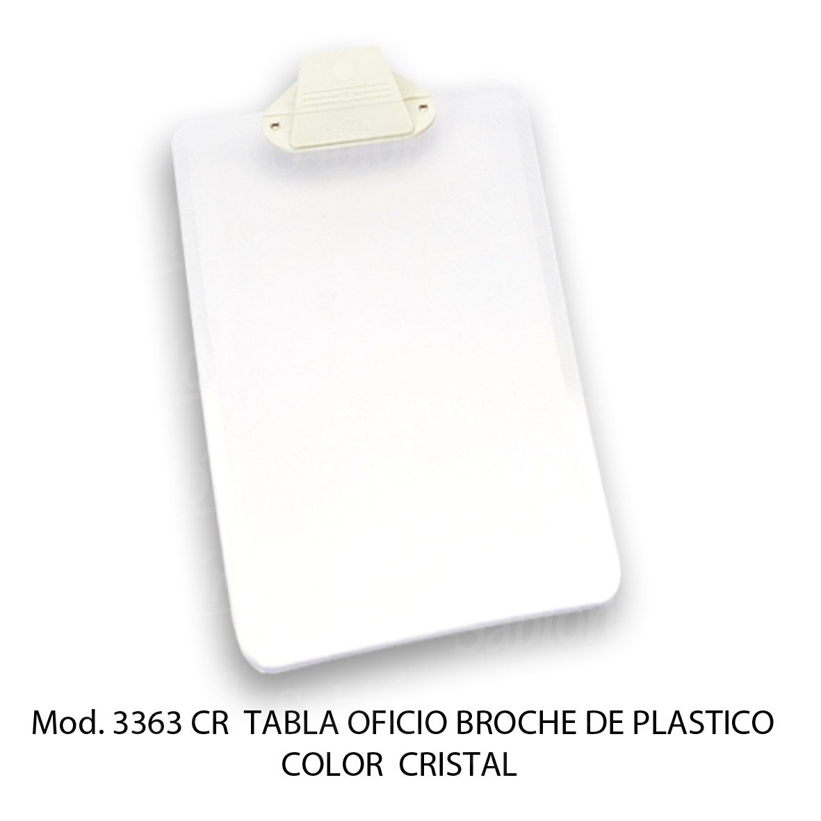 Tabla de apoyo oficio con broche de plastico – Color Cristal – Mod 3363 CR – Sablon